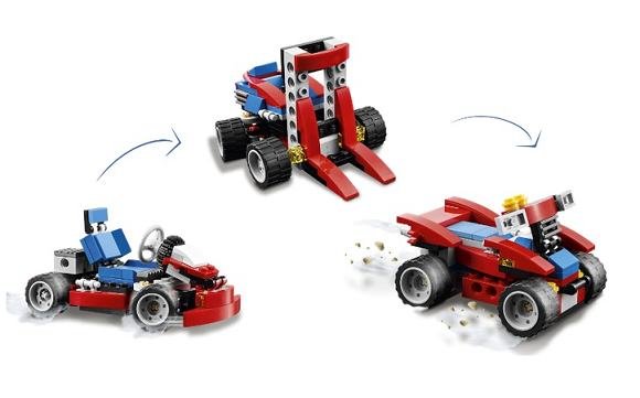 Lego Creator 31030 - Xe đua mini đỏ được thiết kế sáng tạo 3 trong 1. Bé có thể mày mò lắp ghép đến 3 phương tiện hoàn toàn khác nhau.