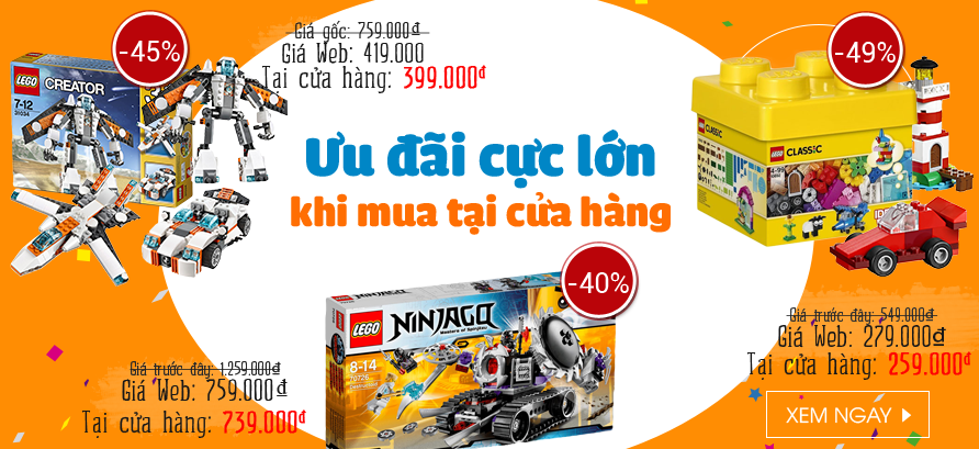 Ưu đãi lớn khi mua hàng trực tiếp tại cửa hàng MegamartMua sản phẩm đồ chơi thông minh thương hiệu Lego nổi tiếng đến từ Đan Mạch dành cho trẻ em trực tiếp tại cửa hàng Megamart – Số 6, Ngõ 68, Quan Nhân, Hà Nội, Quý khách hàng sẽ được giảm giá hấp dẫn nhất từ trước đến nay. Để mua được hàng tốt, chính hãng, giá rẻ tại Megamart, khách hàng lựa chọn những sản phẩm được áp dụng giảm giá tại cửa hàng Megamart: Lego Classic 10692 - Thùng gạch sáng tạo nhỏ Giá gốc : 549.000 đồng Giá đã giảm 49%: 279.000 đồng Giá mua tại cửa hàng: 259.000 đồng Lego Creator 31034...11/09/2015
