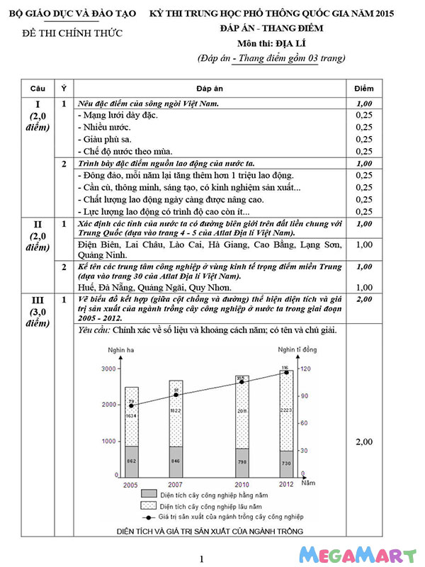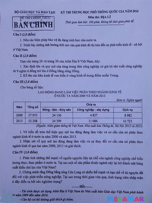 Sau đây là cập nhật mới nhất của Megamart.vn về đề thi THPT Quốc gia môn Địa Lý 2016 và lời giải tham khảo để các bậc phụ huynh và thí sinh tham khảo.