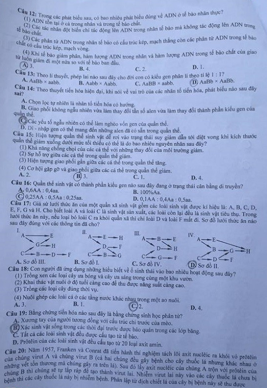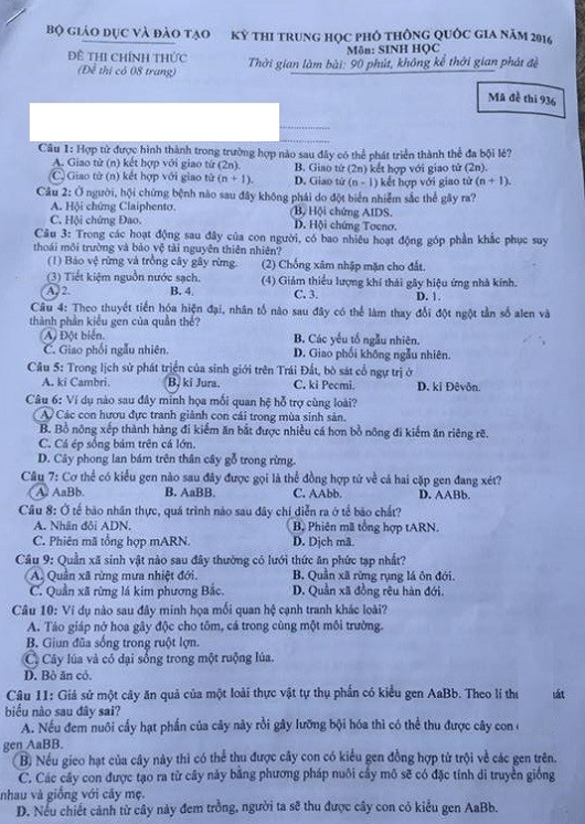 Dưới đây sẽ là cập nhật mới nhất đáp án và đề thi THPT quốc gia môn Sinh Học năm 2016. Các bậc phụ huynh và thí sinh có thể tham khảo.