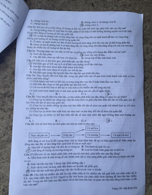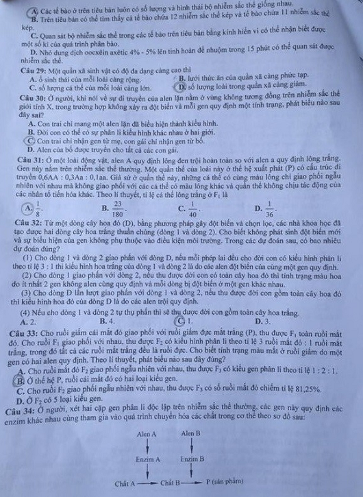 Đáp án và đề thi môn THPT quốc gia môn Sinh Học năm 2016