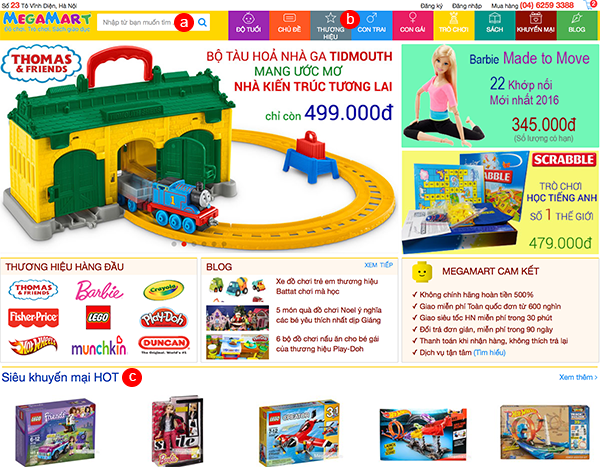 c. Tìm theo các sản phẩm Siêu khuyến mại, Nhiều người mua hoặc Mới nhất