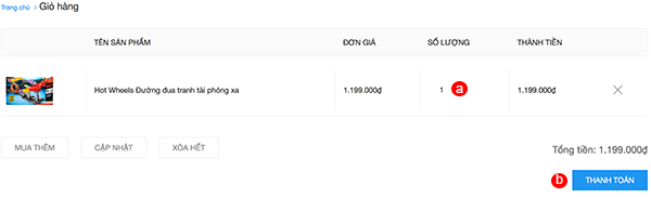a. Điều chỉnh số lượng và cập nhật giỏ hàng