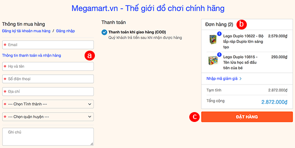 c. Nhấn nút Đặt hàng