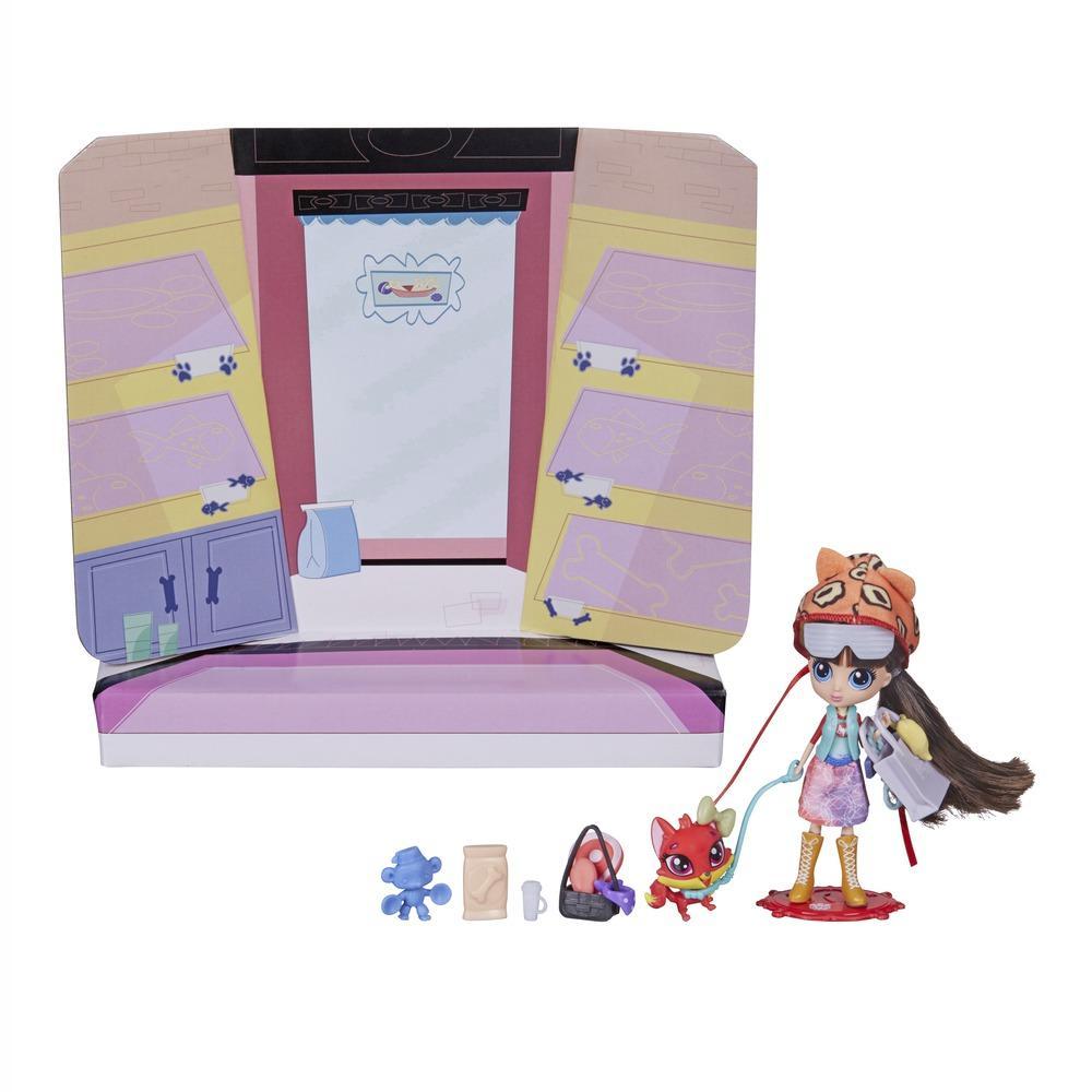 Bộ đồ chơi Littlest Pet Shop Blythe đi dạo phố bao gồm búp bê Blythe, người bạn thú cưng - Cáo Nora Autumn, 1 khung cảnh trang trí và 13 phụ kiện khác nhau.