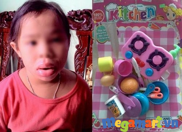 Hình ảnh bé gái bị dị ứng môi khi chơi đồ chơi nấu ăn nhựa Trung Quốc